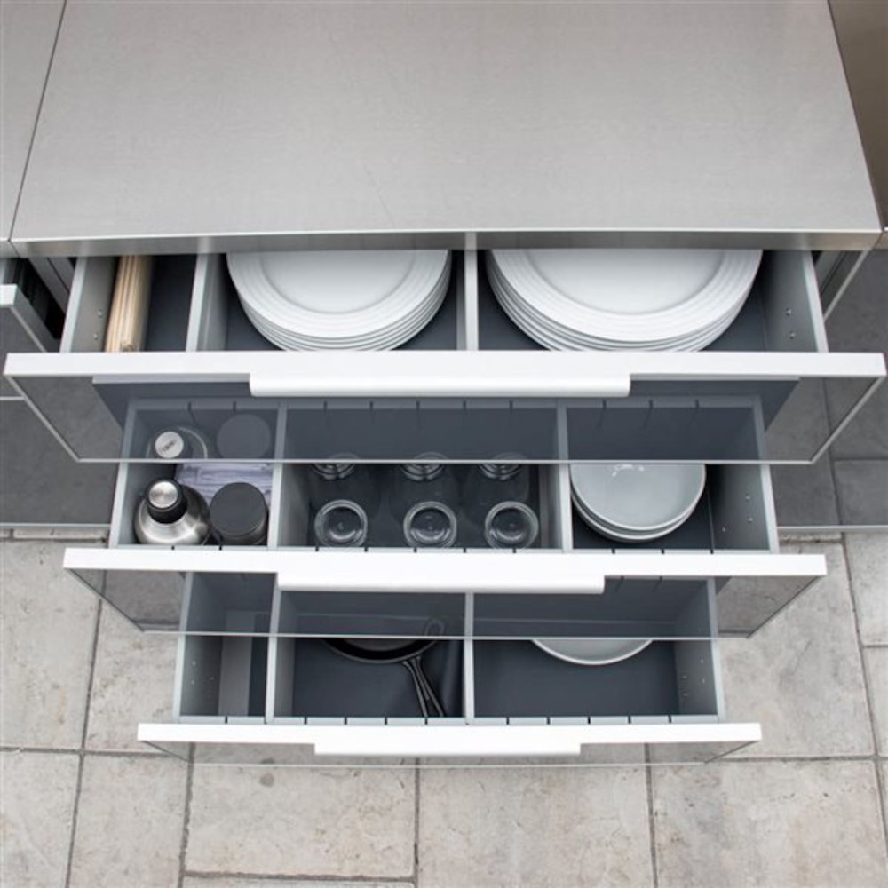 • Deep drawers can hold larger platters, cutting boards and salad bowls.