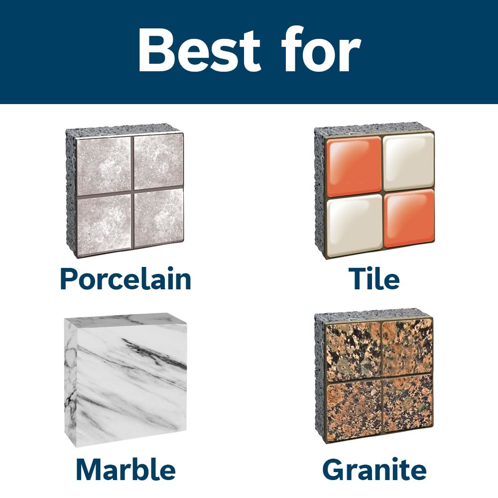 • Dry-drilling bit design – engineered for accurate dry drilling in porcelain and natural stone tile, for a precise, clean hole