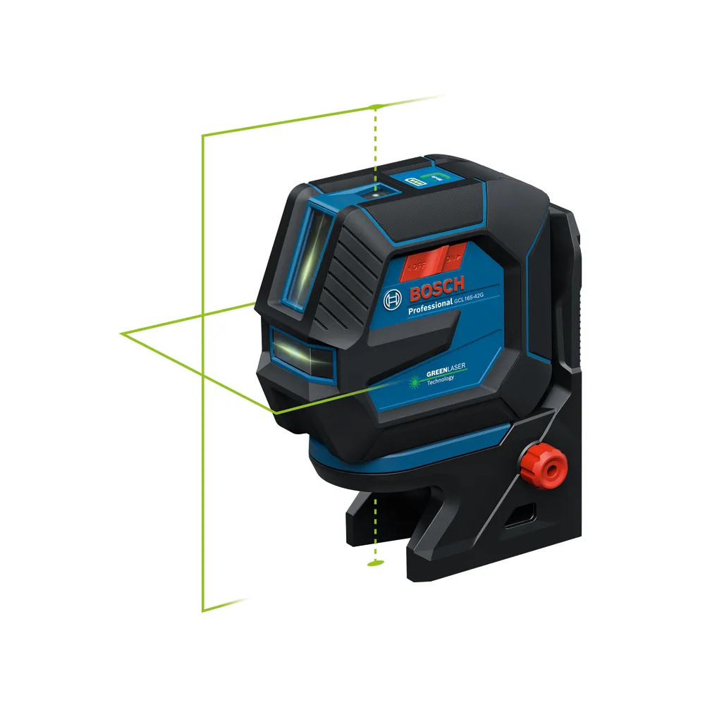 The Bosch GCL165-42GL 3.7V Green-Beam Self-Leveling Cross-Line Laser with Plumb Points pairs remarkable power flexibility with green-beam technology to emit lines up to 4X brighter than standard red beams. Use with the included rechargeable 3.7V Li-Ion 3.0 Ah battery or AA batteries (sold separately) for enhanced versatility and longer runtime on the job.