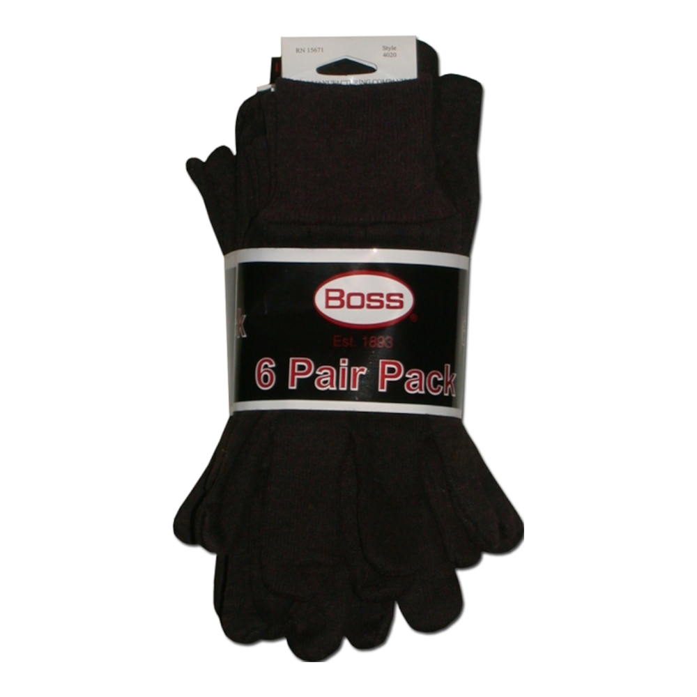 Boss 4020-6 Men's Straight Thumb Knit Wrist Cuff Work Gloves, Large 6 Pack – Brown