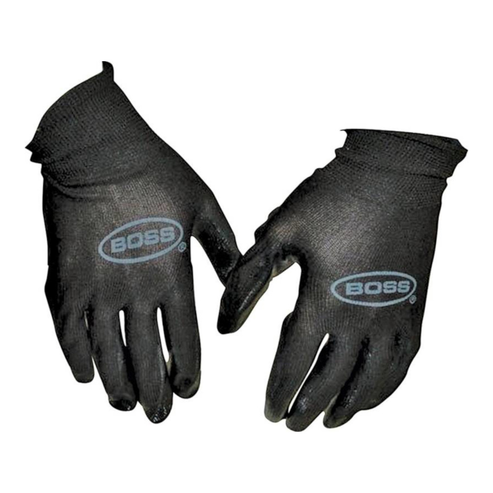 Five pair pack of stretch polyester knit has nitrile coated palm and fingers for maximum dexterity and tactility. Excellent resistance to cuts and abrasions, ideal for assembling applications and handling small parts. Size large.