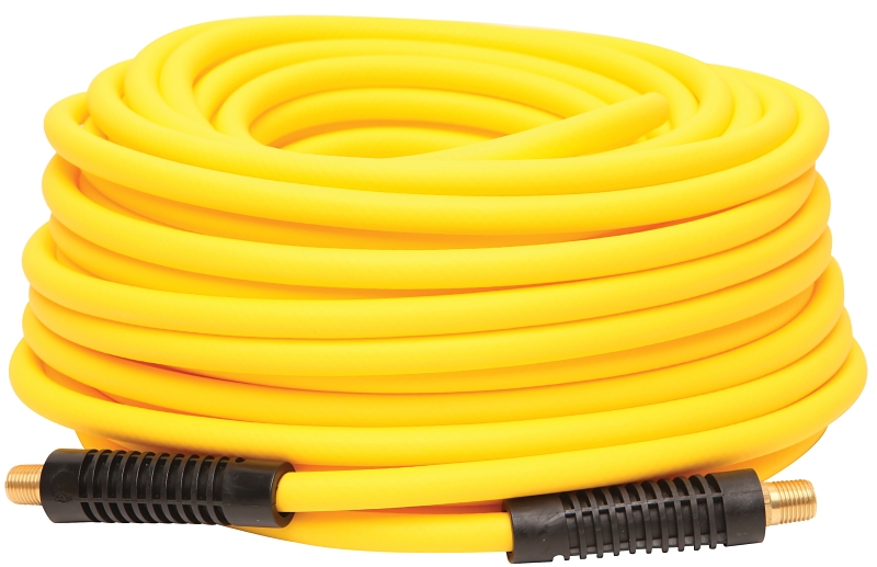 This hybrid polymer blend air hose is designed for maximum hose life and tough jobsites. Use this bend air hose to transfer air pressure from your tank to your tool. Depend on this hybrid polymer blend air hose for safety and durability.