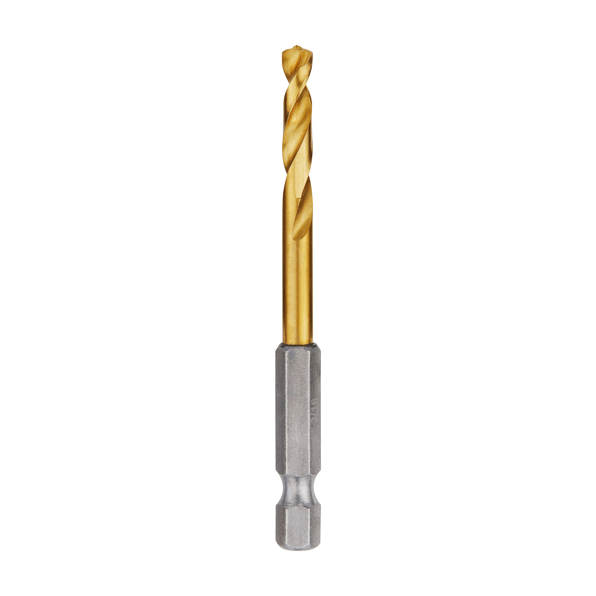 The MILWAUKEE® 3/16″ SHOCKWAVEâ„¢ RED HELIXâ„¢ Titanium Drill Bit is engineered for extreme durability and long life. The QUAD EDGEâ„¢ tip delivers a precision start and four cutting edges to create smaller chips for faster removal and less heat leading to longer bit life. Designed with a Variable Helix â„¢ that includes an aggressive 35° helical angle, which ends at 15°, this titanium drill bit with RED HELIXâ„¢ provide Rapid Chip Removalâ„¢ limiting heat buildup to Stay Sharper Longerâ„¢. The bit also features an internal ENHANCED TAPERED WEB that greatly increases the strength of the bit, reducing premature breakage. Ideal for various applications including but not limited to wood, plastics, and metals, Milwaukee Red Helix Titanium Drill Bits provide up to 5X life vs. black oxide drill bits.