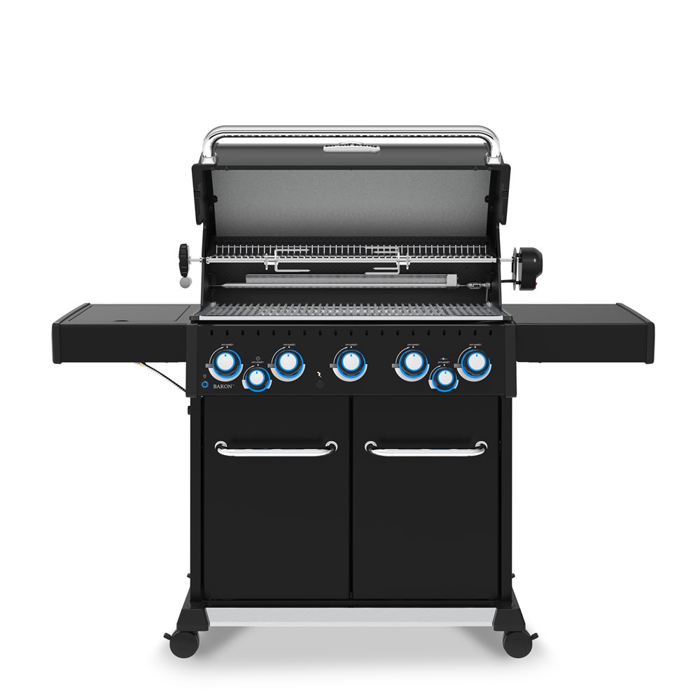 Elevate your grilling game with the Baron 590 Shadow. Featuring five stainless steel burners, a powerful side burner, and a rear rotisserie burner, this premium grill delivers precision cooking and even heat distribution. Its sleek matte black finish, cast iron grids, and stainless steel components ensure durability and style. Perfect for backyard barbecues and gourmet grilling.