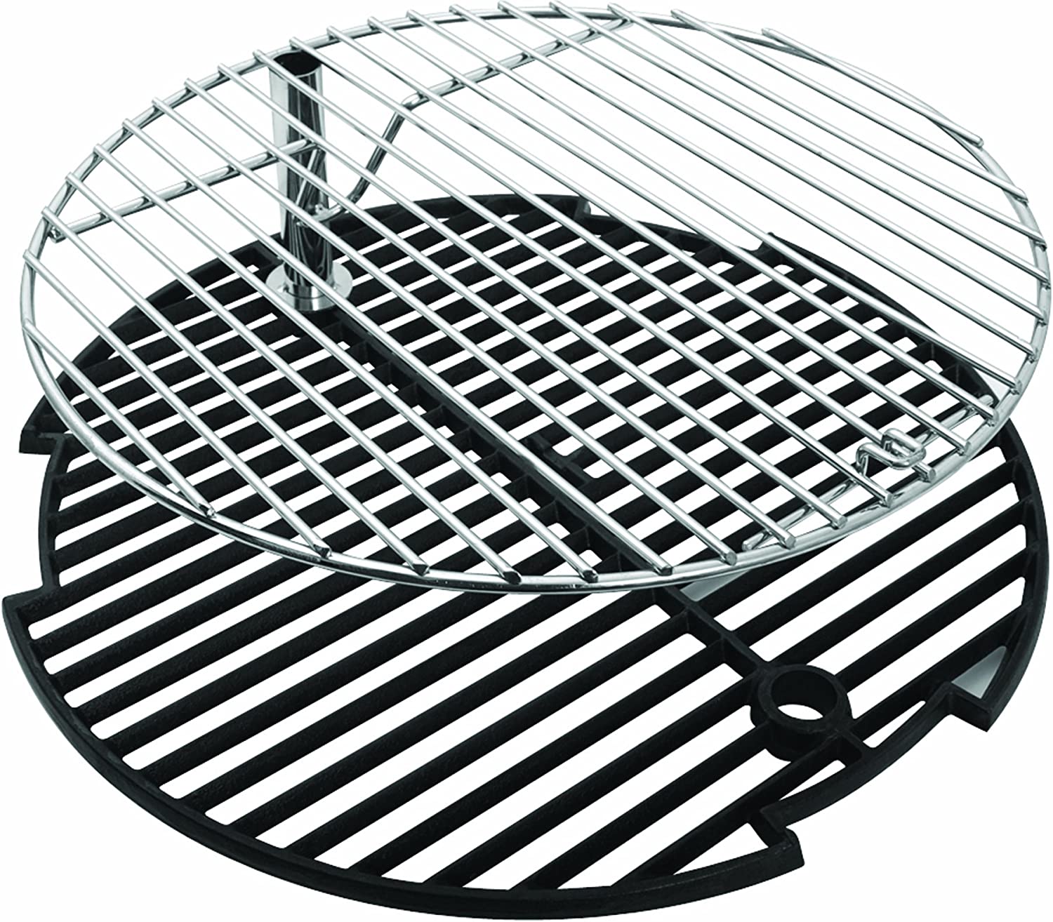 Upgrade accessory option for 2000 series Kegs. Set includes 18.5″ cast iron primary cooking grate and 16″ chrome wire secondary cooking surface for added cooking capacity.