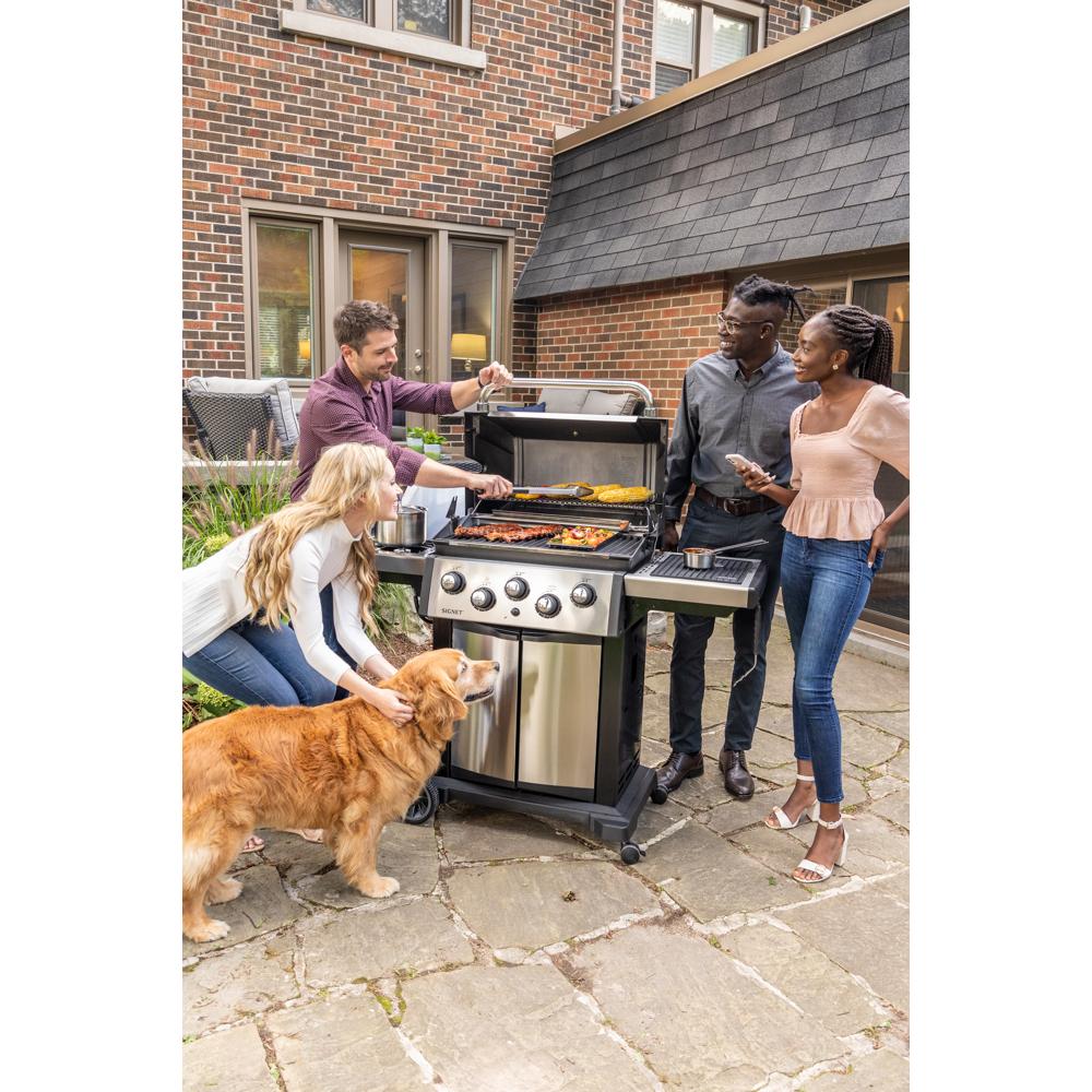 The Broil King Signet™ 390 is the perfect balance of power, performance, and versatility. Designed for grilling enthusiasts, this 3-burner gas grill features stainless steel Dual-Tube™ burners for even heat distribution, while the heavy-duty cast iron cooking grids provide exceptional heat retention for perfect searing. With a built-in rotisserie burner and side burner, the Signet™ 390 offers the ultimate flexibility to cook everything from steaks to slow-roasted meats.
