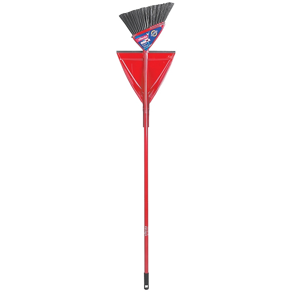 Get the best-selling Vileda Oskar broom with dustpan and enjoy the effectiveness of this dynamic sweeping tandem. Thanks to it’s unique design which makes picking up every speck of dust more effective, the Vileda Oskar broom doesn’t lift dirt in the air it’s flagged-tip bristles trap it, leaving only a trace of dust-free shine behind. Clean deep inside corners and along walls, while special rubber bumpers avoid damaging your floors, furniture and baseboards. Plus, the dustpan clips right on the handle, so you can always keep it at hand.