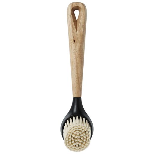 One Lodge Care Scrub Brush, 10 Inch with rubber wood handle with a lacquer finish.