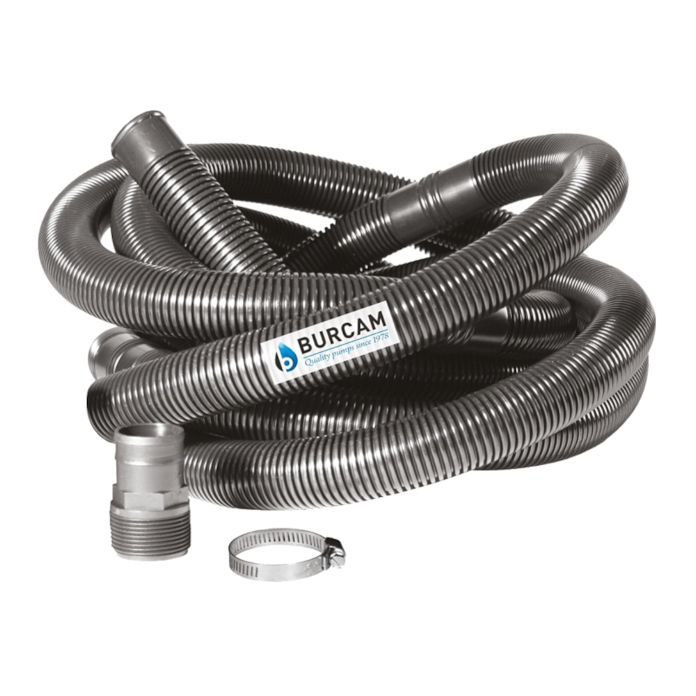 Burcam Drain Hose Kit, 1-1/4 in Dia Outside, 20 ft L, Includes: Adapter and Clamp