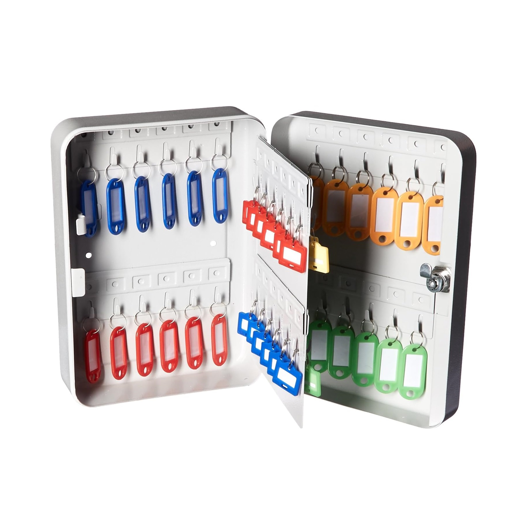 Includes 48 color coded key tags (8 color assorted), disc-tumbler lock with 2 keys, number stickers and mounting hardware included. Durable powder coating finish. MINTCRAFT TS0070-3L KEY BOX 48 KEY 9.84X7.09X3.15. Includes 48 color coded key tags (4 color assorted) and a disc-tumbler lock with two keys. Number stickers and mounting hardware included. Durable powder coating finish.