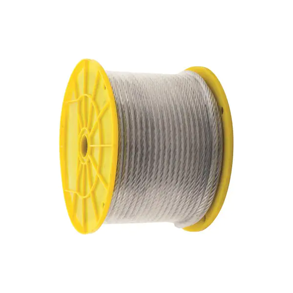 KingChain galvanized aircraft cables are used for many material handling applications and have typical home uses for garage door cables, winch lines, tie-downs, dog runs, hanging signs, and guy wires for flagpoles. KingChain aircraft cable is made in accordance with US Federal Specification RR-W-410D. The cable is hot-dipped galvanized for long lasting durability and moderate corrosion resistance. The 7×19 construction consists of 19 individual wires laid in a spiral around a center King wire to form a strand. Seven strands are then wound together to form a cable. This construction provides superior strength, flexibility and abrasion resistance compared to 7×7 cable. This cable has a Safe Working Load (SWL) of 850 lbs. (386 kg). Its breaking strength is 5 times the SWL (design factor 5:1). Any breaking strength ratings are listed for comparison purposes only. Actual operating loads may vary but should not exceed the recommended design factor of 20% of the products breaking strength. Not intended for aircraft use.