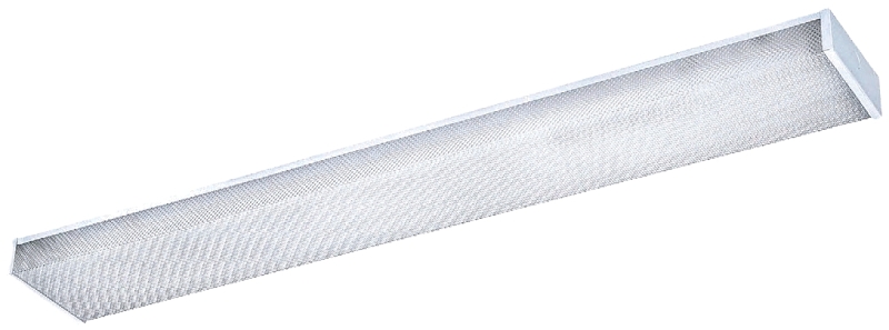 Wrap light fixture, 2 light, 32 W. Acrylic prismatic lens, will not yellow. Thermally protected electronic ballast. Uses 2 F32 T8w lamps (not included). For dry and damp locations, cold temperatures. 48 in x 5-1/8 in x 2-3/8 in. cCSAus, GreenChioce.