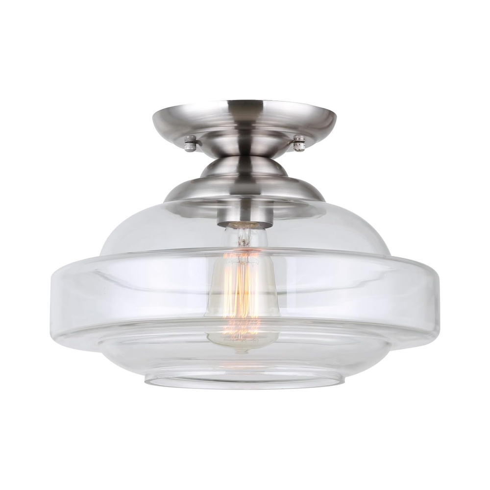 In a salute to both past and present endurance, the Chicago Flush Mount by Canarm in brushed nickel adds a vintage feel that complements many loft, urban, industrial, and transitional decors. The unique shape of the clear glass shade adds interest and showcases the soft glow of the vintage bulb within, making it an elegant yet functional addition to any space.