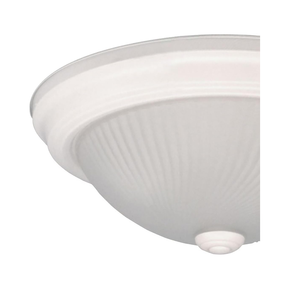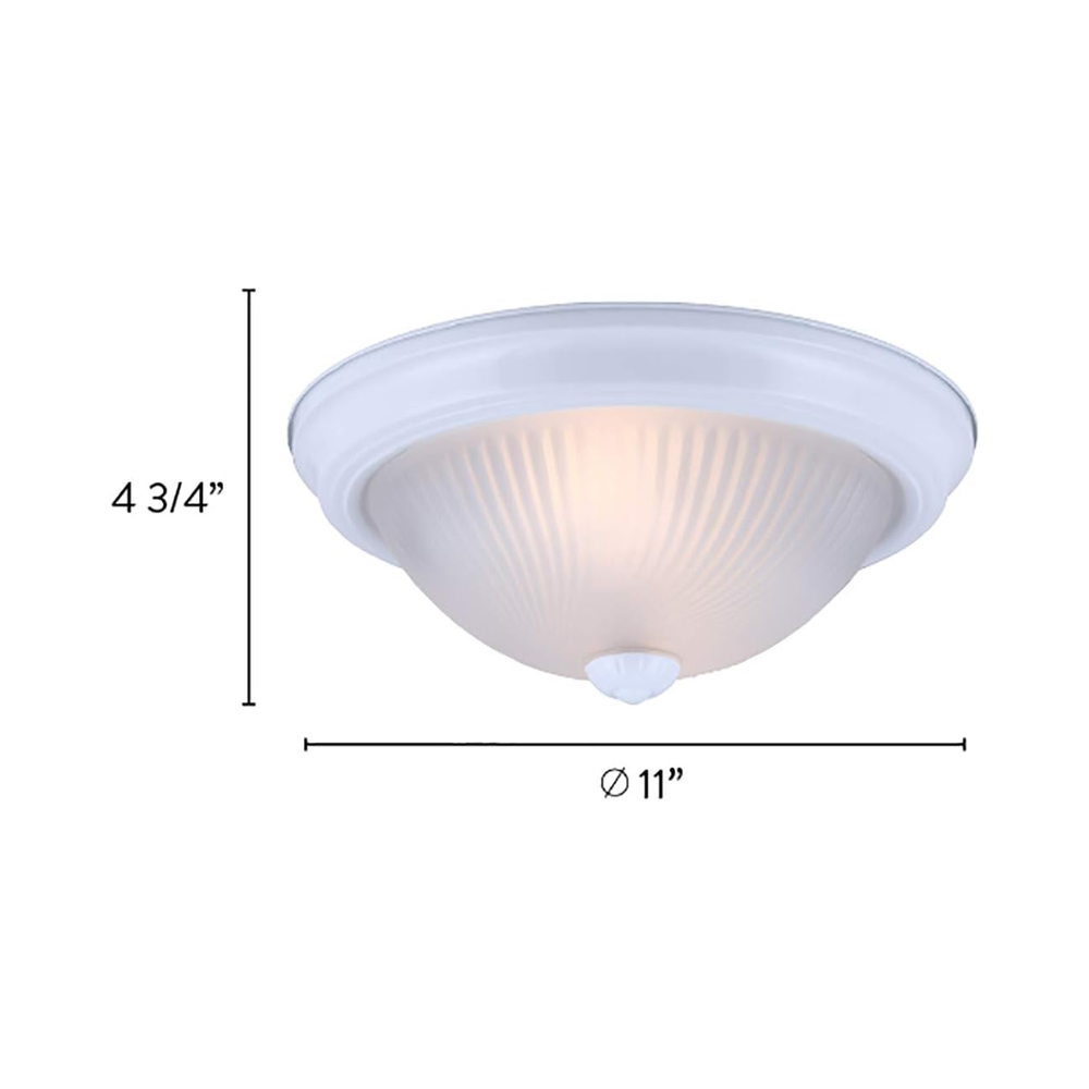 The 11” Flush Mount Ceiling Light in white with frosted swirl glass delivers simple elegance. With dimensions of 4-3/4” H x 11” W, it supports two 80W Type A bulbs (not included), providing bright, even lighting suitable for any room.