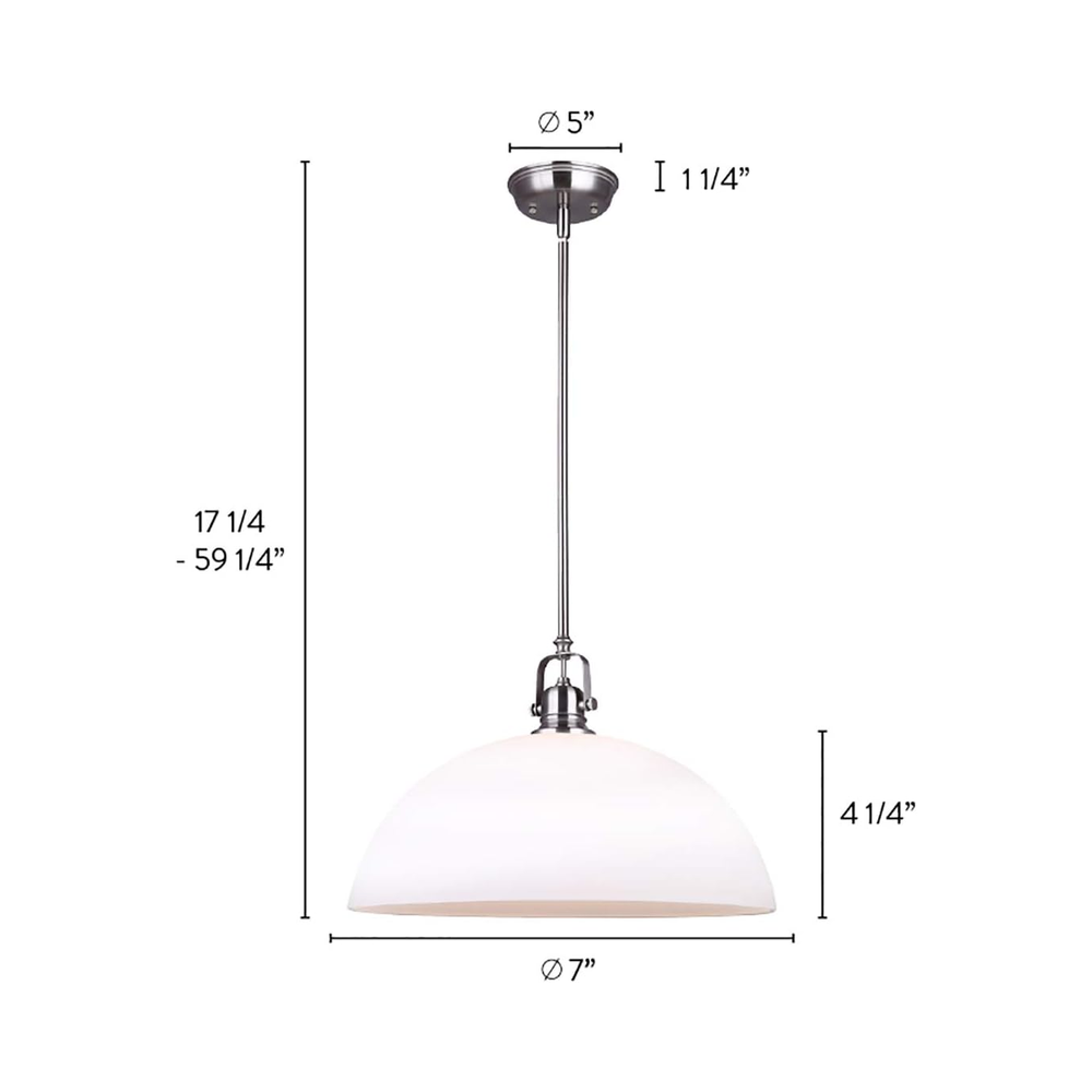 The Madison 1 Light Pendant Light by Canarm features a brushed nickel finish and white flat opal glass. This versatile pendant light includes a tilting head and comes with three 12-inch rods and two 6-inch rods, allowing for customizable height adjustments. Ideal for kitchens, dining areas, or entryways, the Madison Pendant Light brings a touch of elegance and functionality to any space.