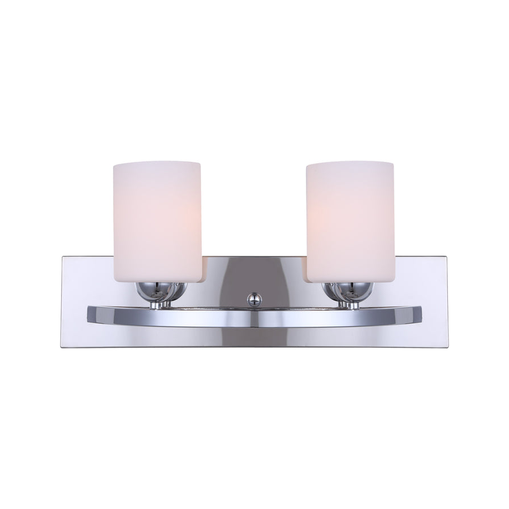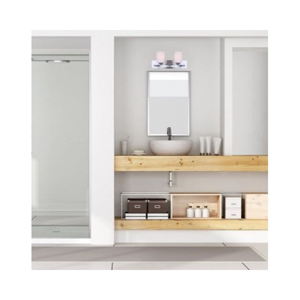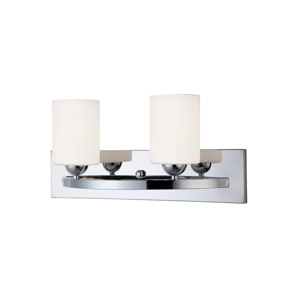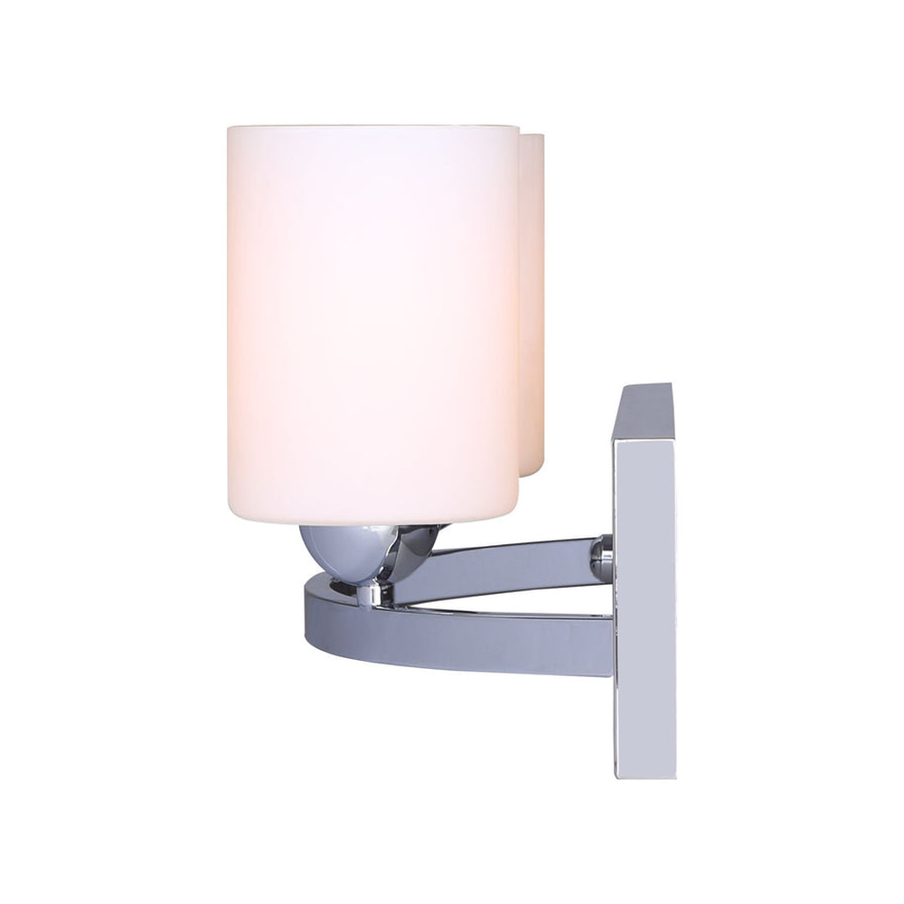 The HAMPTON vanity light combines modern style with ample lighting, featuring clean symmetry, arching arms, and flat opal glass. Its chrome finish adapts to various lighting decors.