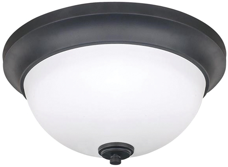 Canarm New Yorker Flush Mount Ceiling Fixture, 120 V, Wattage Rating: 120 W, Lamp Wattage: 60 W, Number of Lamps: 2, Lamp Type: Type A, Lamp Base: E26 Medium, Bulb Shape: A19, Shade Type: Flat Opal, Shade Material: Glass, Shade Color: White, Fixture Material: Steel, Fixture Finish: Oil-Rubbed Bronze, Dimensions: 13 in W x 6 in H