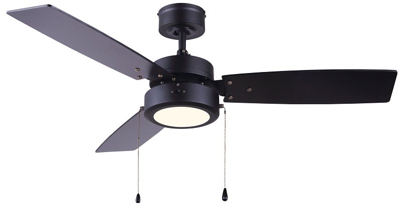 Canarm WALLIS CF42WAL3BK Ceiling Fan with Light Kit, 3-Blade, Black Housing, Black Blade, 42 in Sweep, MDF Blade