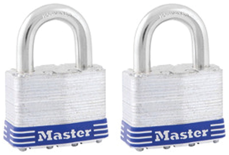 Master Lock 5T Padlock, Keyed Alike Key, 3/8 in Dia Shackle, 1 in H Shackle, Boron Alloy Shackle, Steel Body, Laminated
