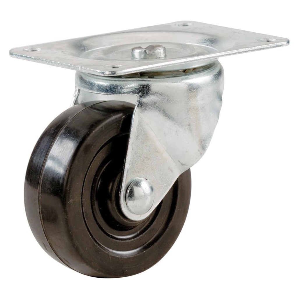 Shepherd Hardware Soft Rubber Casters give mobility to heavy loads on smooth, hard surfaces and finished concrete floors where quiet movement and floor protection are major considerations. The Shepherd 9480 model is a general duty caster with a 4-inch wheel diameter, 225-lb load rating, and swivel plate mount.