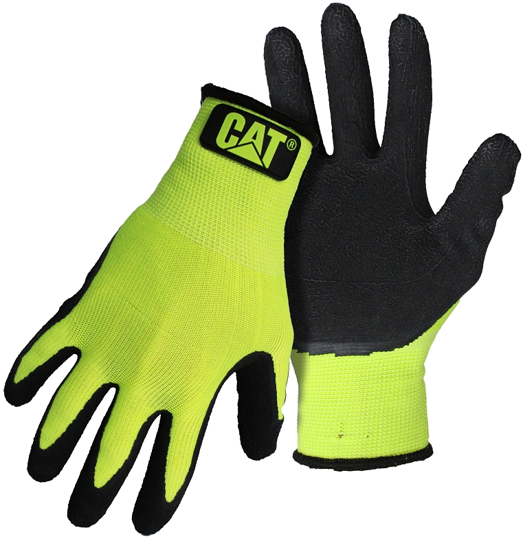 Cat CAT017418M High-Visibility Coated Gloves, M, Knit Wrist Cuff, Latex Coating, Polyester Glove, Green