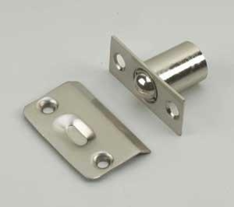 Onward Ball Catch, Adjustable, Faceplate Size: 2.24 in L x 1.37 in W x 0.03 in Thick, Metal, Brushed Nickel, Dimensions: 2-9/64 in L x 29/32 in W, Includes: Nail, Screw