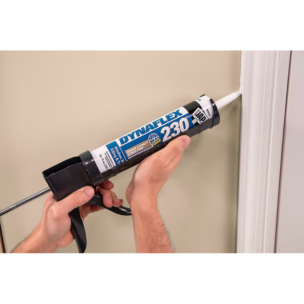 DAP® Dynaflex 230® 100% water-proof window, door and trim sealant is dap’s most advanced latex sealant technology. It combines the outstanding durability, adhesion and flexibility of a silicone with the easy tooling, paintability, low-odor and water clean-up of a latex sealant. It is highly flexible to handle joint movement caused by variations in temperature and humidity without cracking. It provides a long-lasting, durable seal that is 100% waterproof and weatherproof. Ideal for sealing air leaks around windows, doors, siding, trim and baseboards to improve the energy efficiency of a home and reduce utility costs. Cured sealant is mold and mildew-resistant. Interior or exterior use.