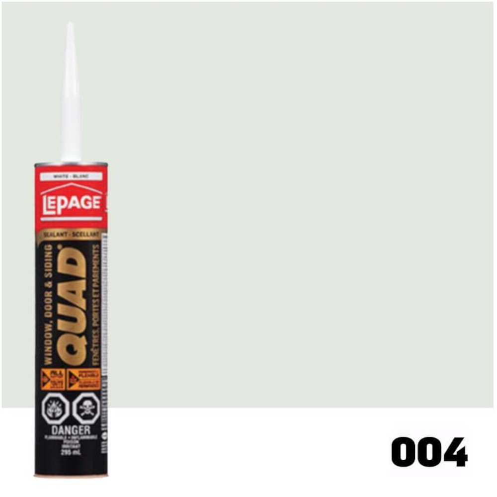 LePage Quad Window, Door & Siding Sealant is composed of elastomeric polymers and high quality synthetic resins. This product offers the superior adhesion characteristics and unmatched elasticity found in high performance sealants. It yields a tough, rubbery seal which resists outdoor weather-related elements like water, oxygen, ozone, heat and UV light. The formula skins over in a short time to resist dirt and dust pickup. It goes on smoothly and has easy cut-off without stringing. When cured, the surface displays a slight sheen similar to some silicone sealants. QUAD Window, Door & Siding Sealants are paintable with either latex or oil-based paints.