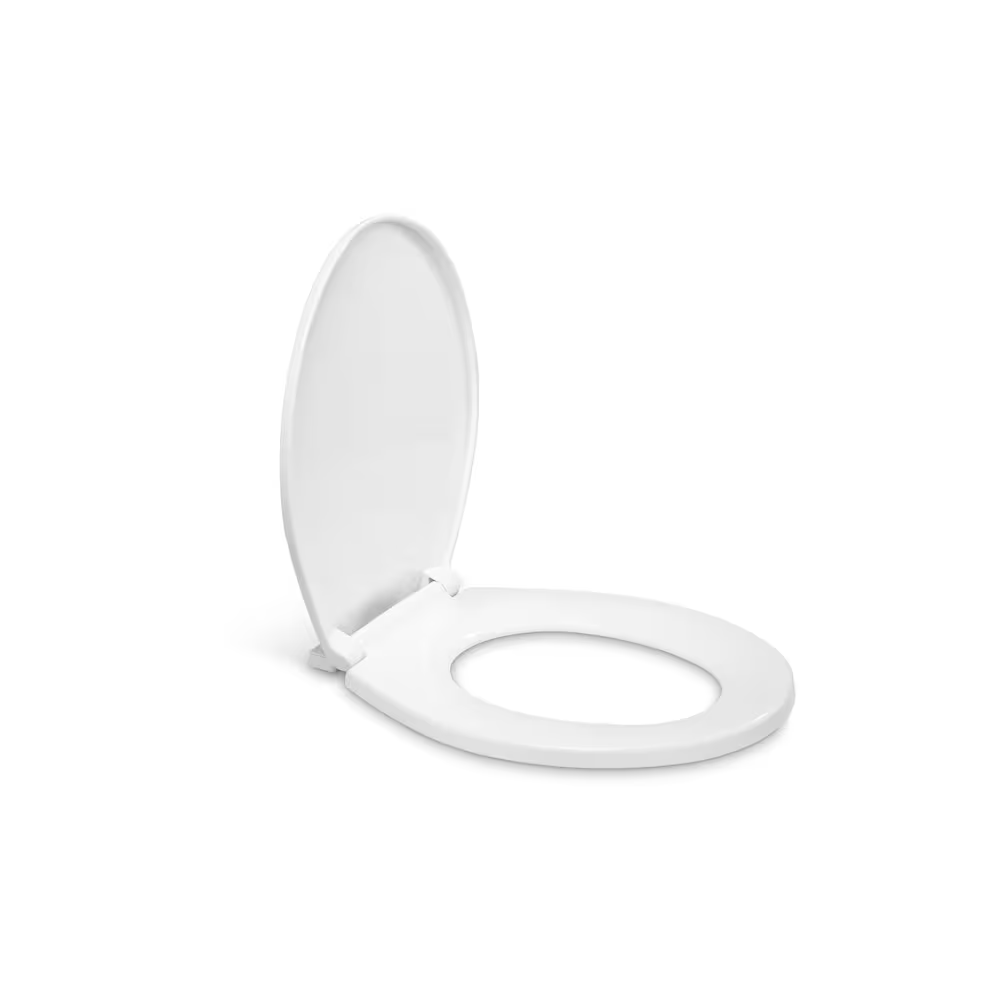 • Plastic seat, closed front with cover for regular round toilet bowl