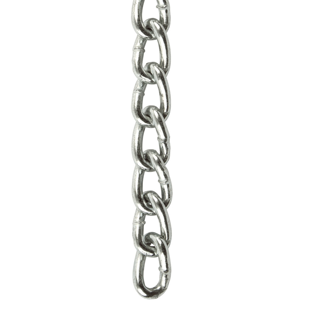 Machine chain is a low carbon steel, electronically welded chain that is not heat-treated. It has shorter links that make it very flexible and particularly popular as a pet chain because the twisted links allow the links to lay flat. Standard finishes are nickel-plated or zinc-plated. Twist link chain is a low carbon steel, electronically welded chain that is not heat-treated. It has shorter twisted links that make it very flexible and allow it to lay flat so it is particularly popular as a pet chain. Chain is zinc-plated with a bright attractive finish with moderate corrosion resistance.