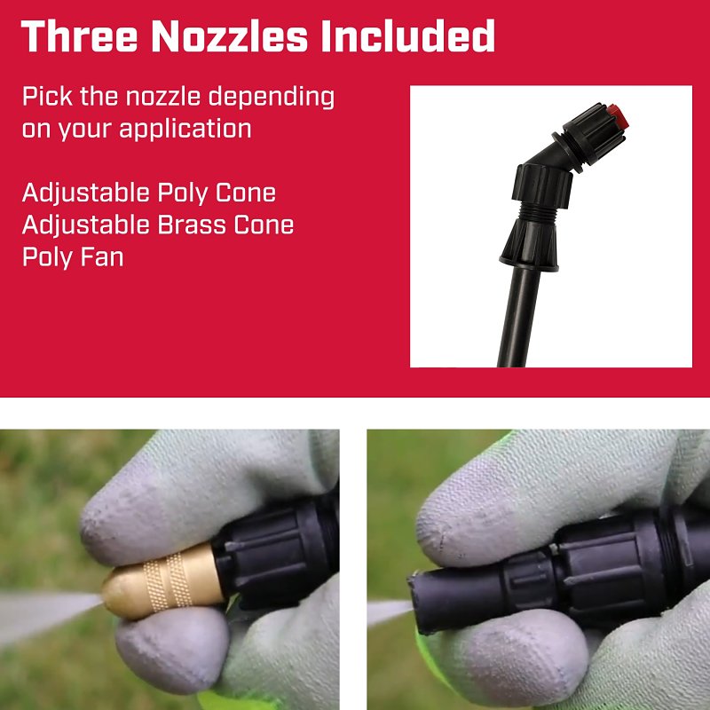 Spraying weeds around your fence line, applying liquid fertilizer throughout your yard or protecting your flower garden from pests? We’ve taken our innovative Mixes on Exit (M.O.E) technology and condensed to an easy to carry backpack. No more worrying about pre-mixing chemicals or wasting what you don’t use. Our 63950 M.O.E. backpack sprayer comes with two chemical tanks so you can use one and keep one handy when you need to switch. Clean water goes directly into the main tank, then set the dial to accurately adjust your chemical concentrate. The attached padded straps with lumbar support and cushioned grip shut-off keep you comfortable while spraying. Three nozzle types are included so you have options to fit your application.