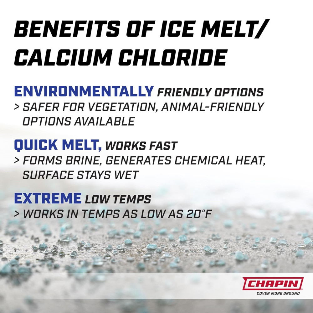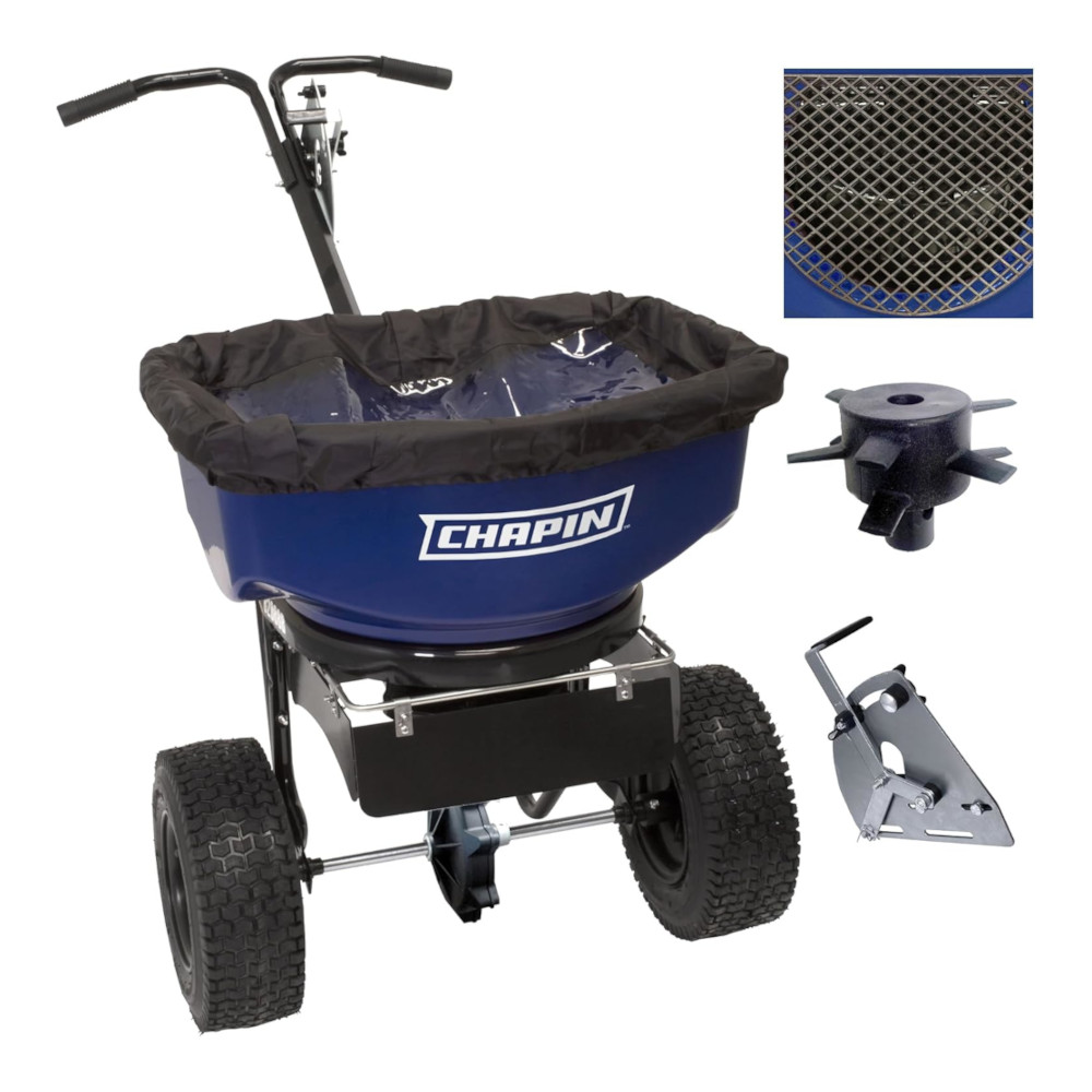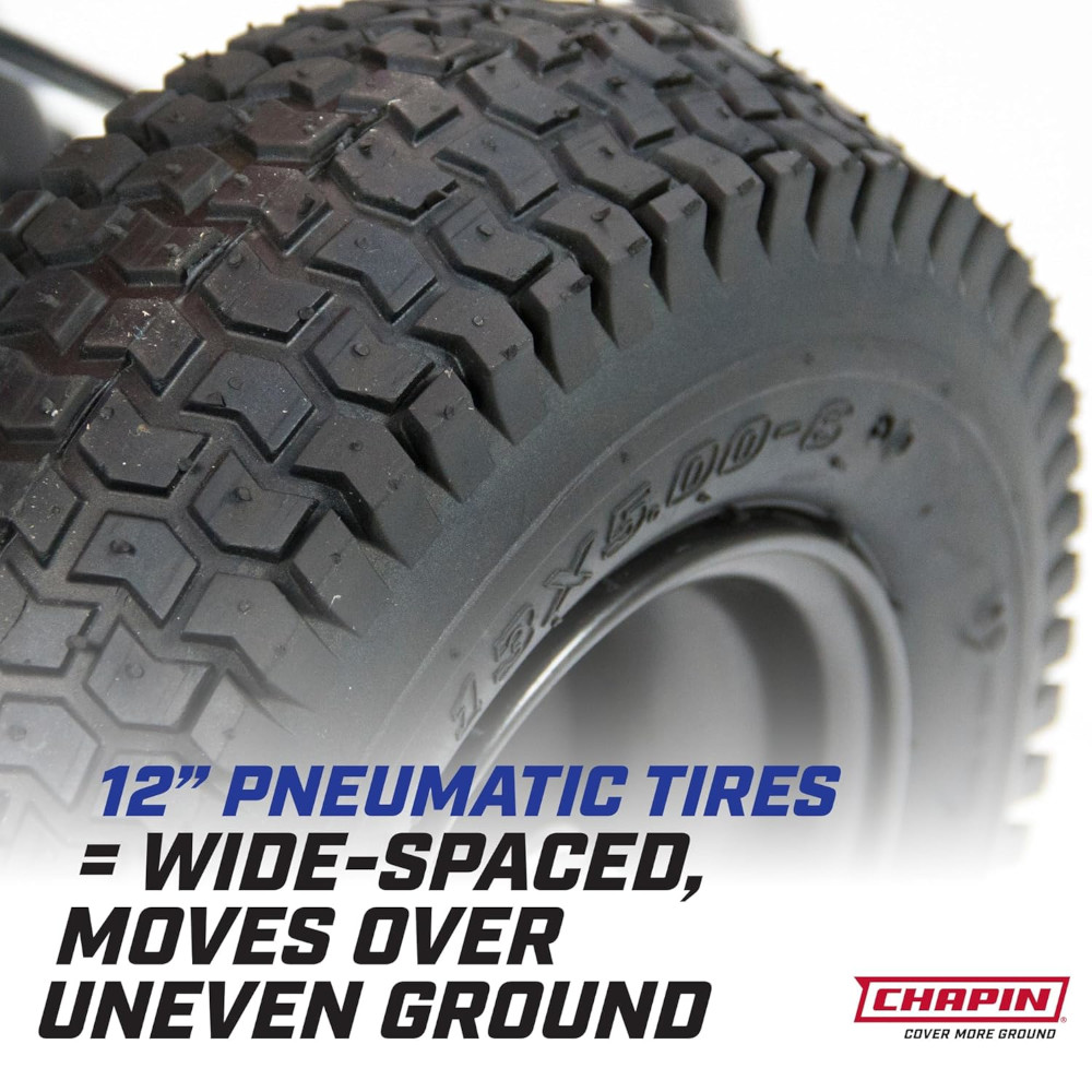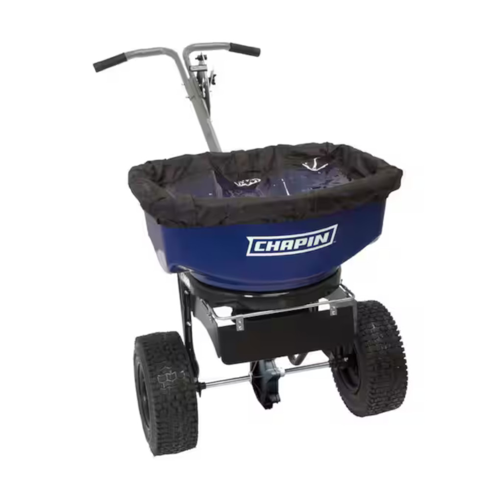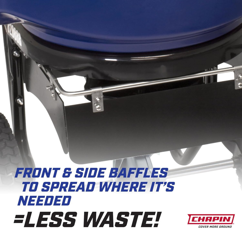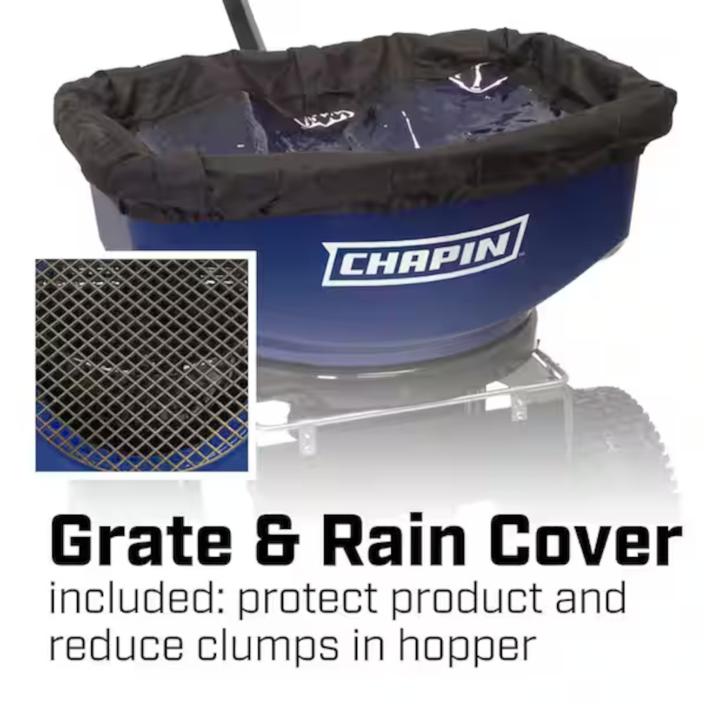 Chapin’s 82088B 80-pound poly SureSpread salt and ice melt spreader is commercial-grade and perfect for plow and snow removal companies or a residential driveway. The 80-pound poly hopper is rust and weather resistant. With a rugged powder-coated steel frame, solid steel linkage, T-shaped handle with rubber hand grips, full gate control and aggressive toothed auger, he 82088B is the full package. It also comes with a rain/snow cover to protect the product during snowy or rainy weather. Adjust the front and side baffles so you’re not spreading product where it’s not needed. Tough 12-inch pneumatic tires handle uneven winter ground. This unit is not recommended for use with salt products, sand or sand mixes, pelletized lime, lime or lime powders. Made in the USA with global materials and backed by Chapin’s 5-year limited warranty.
