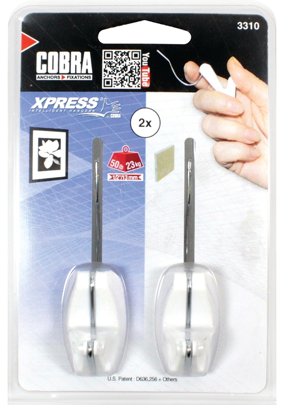 Cobra Anchors Xpress 3310 Picture Hook, 50 lb, White