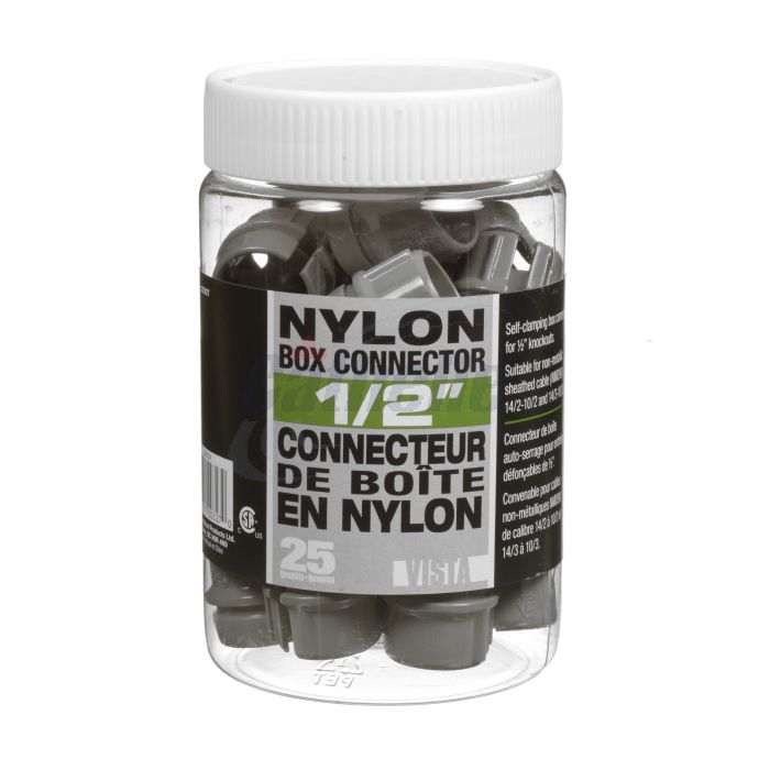 Vista 3405X 1/2" Snap-In Nylon Box Connector, 25 Pack