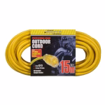 With a generous length of 15 meters (49.2 feet), this extension cord provides ample reach, allowing you to connect devices and equipment even at a distance. The PowerSource 12/3 15M 1-Outlet Heavy Duty Extension Cord is constructed using high-quality materials, specifically designed for heavy-duty applications. Its rugged build ensures durability and long-lasting performance, making it ideal for challenging work environments.