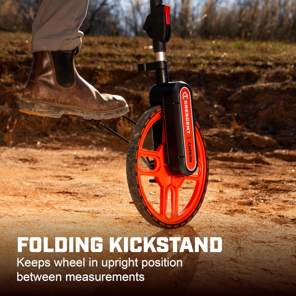 In addition to its ergonomic and accuracy-enhancing features, the Lufkin CMW12M 12″ Metric Measuring Wheel offers excellent portability. The unit folds in half for compact storage and easy transport, and the integrated folding kickstand keeps the wheel upright when not in use, freeing your hands for note-taking or adjustments. Its thoughtful design and rugged construction make it a top choice for contractors, surveyors, and utility professionals alike.