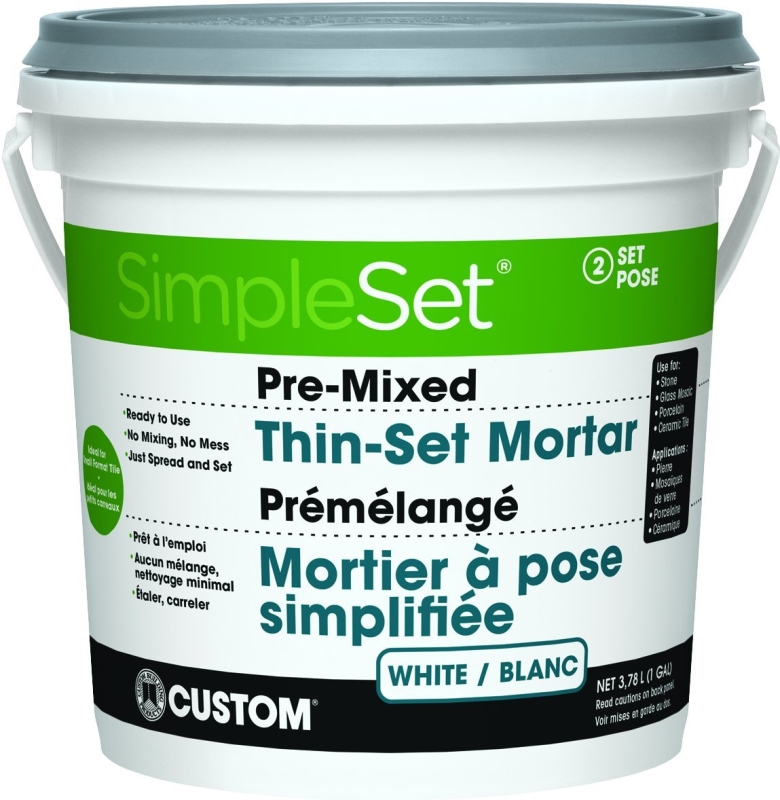 Custom SimpleSet Series CSTTSW1-2 Thinset Mortar, White, Paste, 1 gal Pail Sells in Quantity of 2