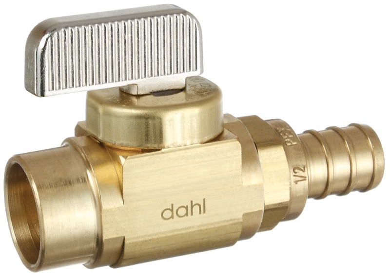 Dahl mini-ball Straight In-Line Stop and Isolation Valve, 1/2 in Connection, Female Solder x PEX Crimpex Connection, 250 psi, Body Material: Brass