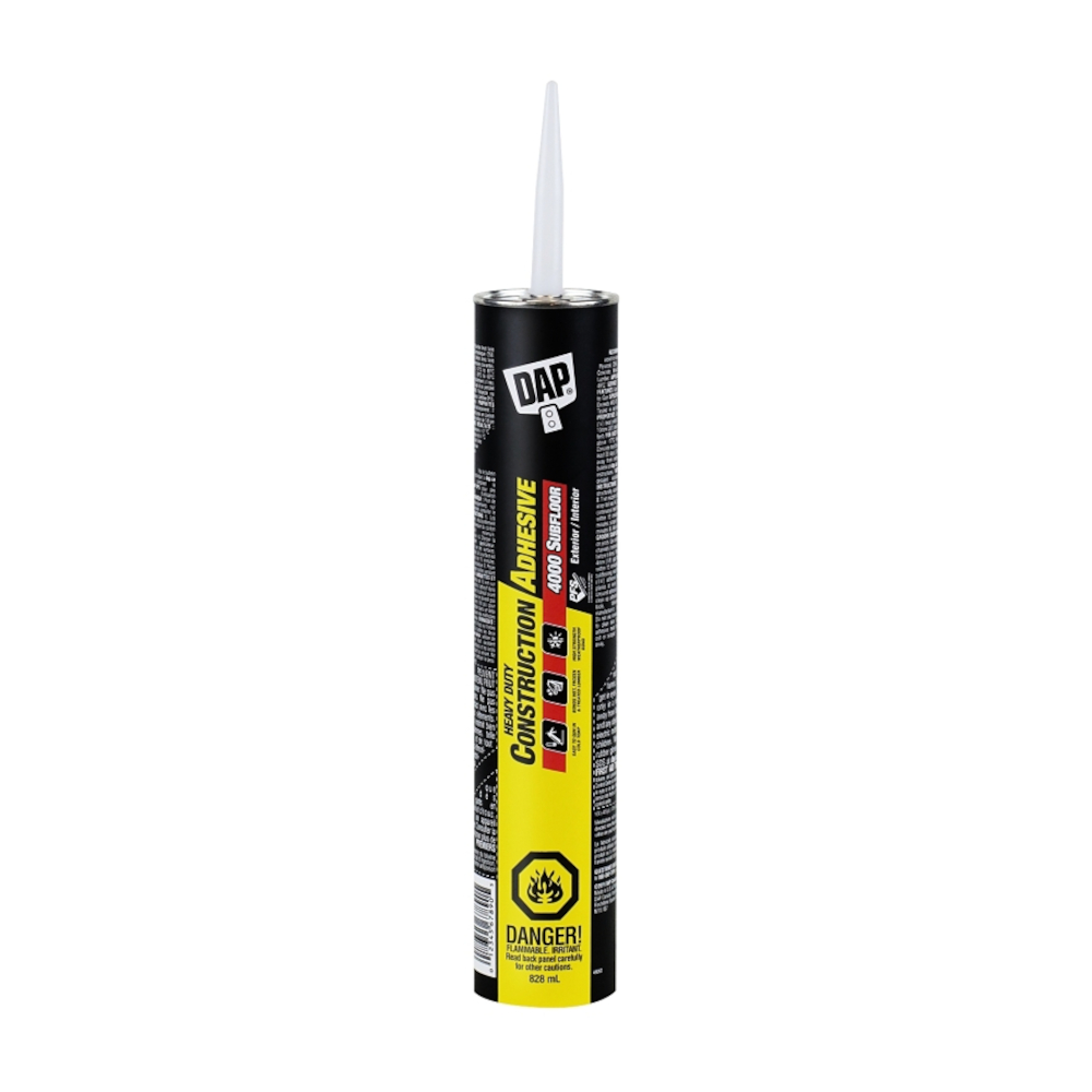 DAP® construction adhesive 4000 SUBFLOOR is a premium grade construction adhesive specifically formulated for subfloor & deck installation. This VOC compliant adhesive prevents floor squeaks and improves the structural performance of floor assembly when used properly. DAP® construction adhesive 4000 SUBFLOOR is an easy to gun adhesive that delivers a strong durable bond.