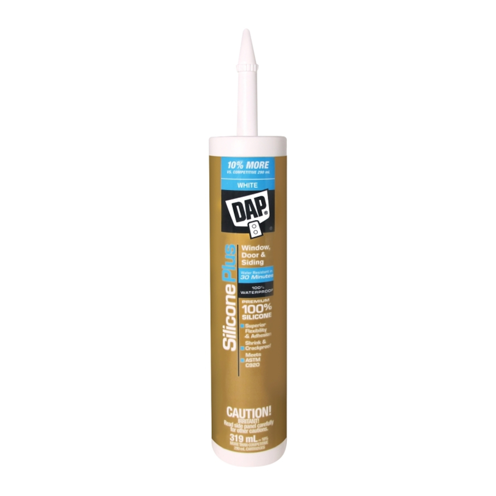 DAP® Silicone Plus™ premium silicone rubber sealant is a one-component neutral cure material that cures to a tough rubbery solid upon exposure to moisture in the air. It provides a long-lasting, flexible, watertight seal and offers excellent adhesion for applications. Backed by a Lifetime Guarantee.