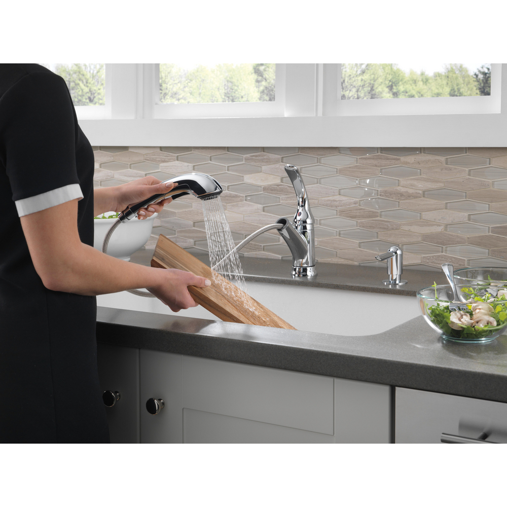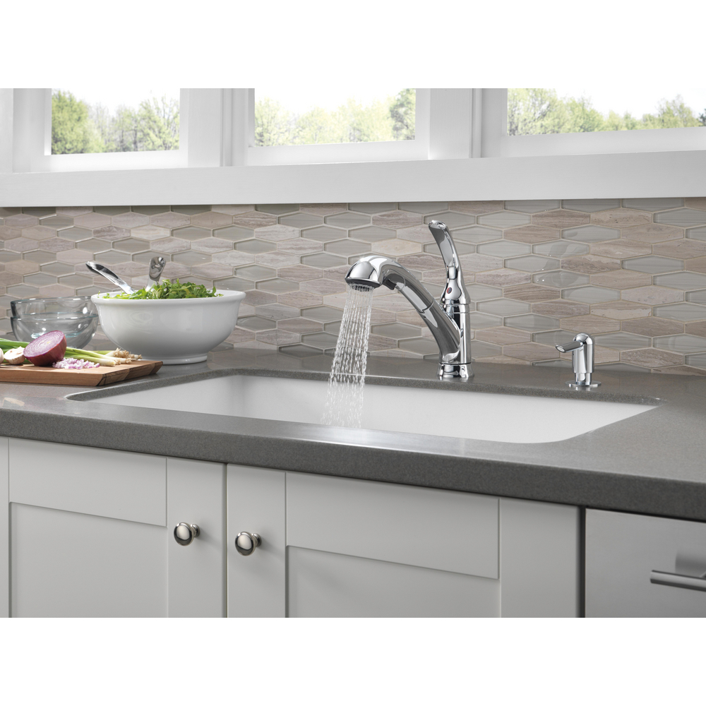 Delta 4362LF-SSSD Single Handle Pull-Out Kitchen Faucet & Soap Pump – Stainless Steel