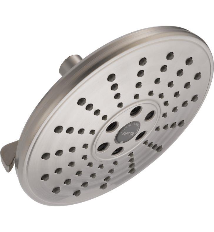 Delta 52688 Features: Covered under Delta s limited lifetime warranty Constructed of plastic ensuring durability and dependability Premier finishing process – finishes will resist corrosion and tarnishing through everyday use Coordinates with products from the Universal Showering line seamlessly Multi function shower head – featuring 3 spray patterns Designed to easily install with standard U.S. plumbing connections Delta 52688 Technologies and Benefits: Touch Clean: The Delta® soft rubber Touch-Clean® Spray Holes make it easy to wipe away unsightly calcium and lime buildup with the touch of a finger helping prevent your product from developing a mineral blockage which could reduce water flow. While other kitchen faucets shower heads and hand showers may require chemical cleaners and soaking time to dissolve mineral buildup Delta products featuring Touch-Clean Spray Holes can be simply wiped clean for improved performance and an instantly refreshed look. H2Okinetic: H2Okinetic® Technology is the study of water in motion. By controlling water’s shape velocity and thermal dynamics we’ve reinvented the showering experience—creating a warmer more luxurious spray giving the feeling of a high-flow spray with a fraction of the water. Delta 52688 Specifications: Shower Head Width: 7-11/16 (left to right) Shower Head Height: 3-7/16 (top to bottom) Flow Rate: 1.75 gallons-per-minute.