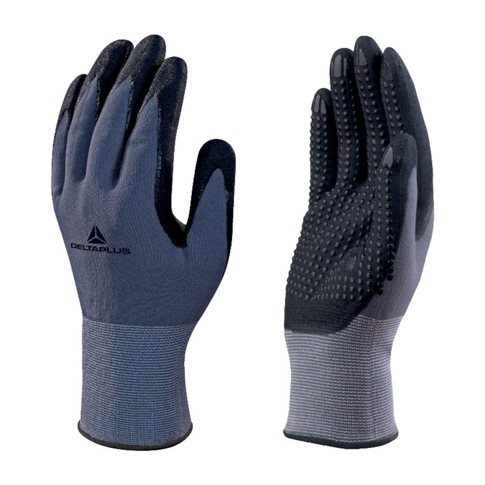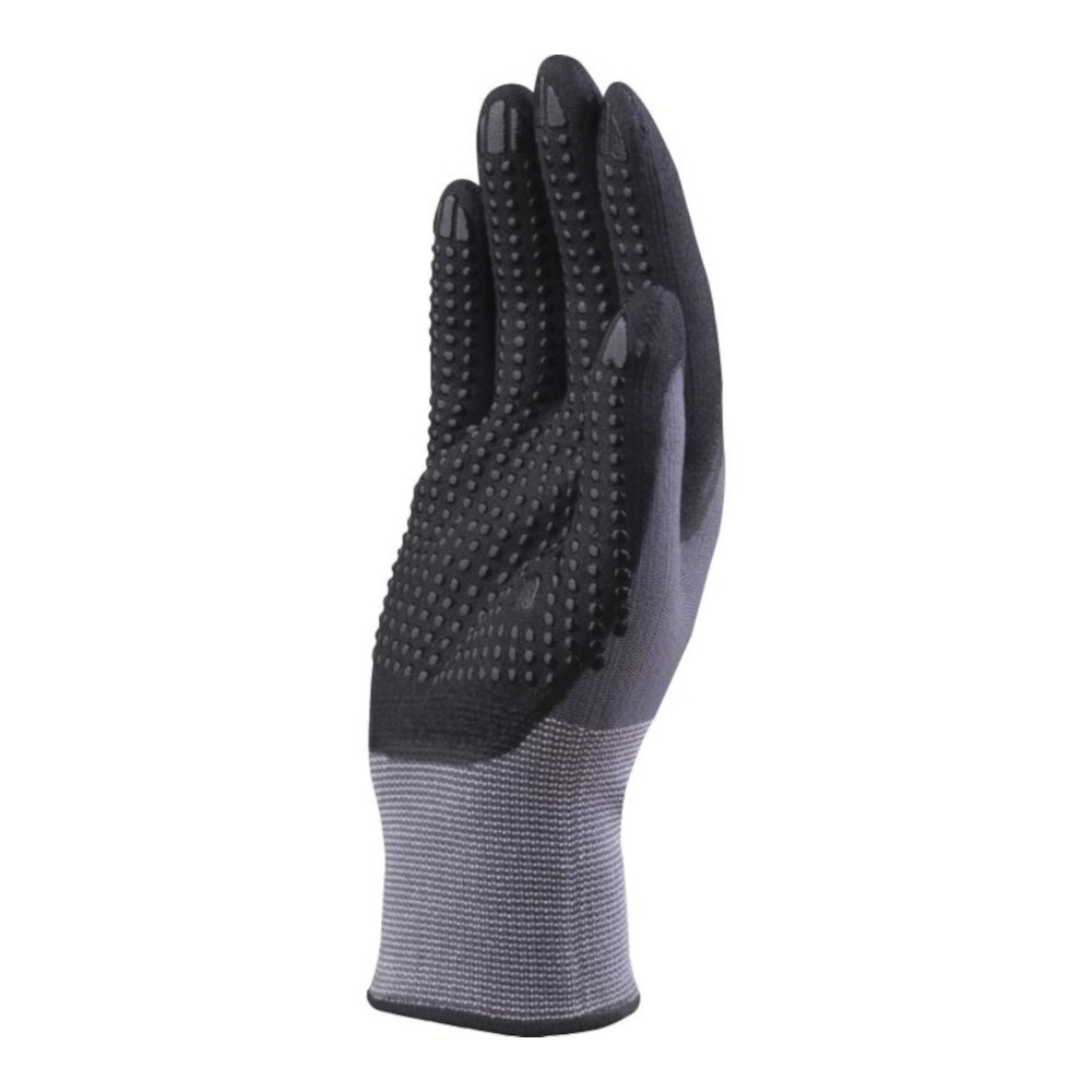 Delta Plus VE727-10 Polyamide Spandex Work Gloves, XL Size 10 – Black & Grey