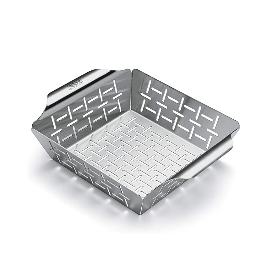 A grill basket gets your Weber grill primed for side dishes. Add chopped veggies to the pan and place it on the grill alongside the main entrรฉe. Makes grilling delicate or small foods easy. Fits all Weber charcoal, gas and electric grills.