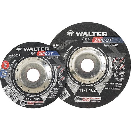 Depressed Center Cut-Off Wheel, Abrasive Material Aluminum Oxide, Connector Size 7/8 in, Connector Type Unthreaded Hole, Grit 60, Overall Diameter 4 1/2 in, Overall Thickness 0.0625 in, Primary Material Applicationn Cast Iron, Stainless Steel, Steel, Compatible Tool Type Angle Grinder, Series ZIP+XTRA, Wheel Type Type 27, Maximum Operating Speed 10,200 RPM.
