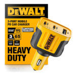 Fast & safe DEWALT car charger (65W total output) for multi-device charging; compact, durable, and universally compatible.