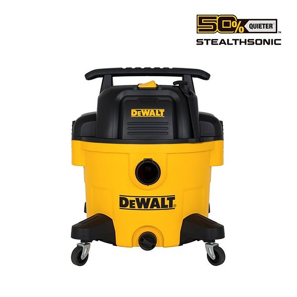The DEWALT 9-gallon Stealth Sonic Poly Wet/Dry Vacuum has a powerful quiet motor providing strong suction power and airflow to clean up the toughest wet and dry debris while be 50% quieter than the current model. The DXV09P-QTA features a durable quick-connect locking hose, making it an easy but secure connection. The built-in drain port allows for convenient emptying of liquids. High Performance Rubberized non-marring casters allow with smooth and easy movement across any surface. The large fixed handle provides a convenient cord wrap and is durable to ensure transportation at any job site. A rugged nylon water-resistant storage bag allows for easy and convenient access of all accessories and tools. The reusable and washable Cartridge Filter eliminates 95% of dust and contaminants. The filter features the exclusive Clean and Connectâ„¢ system only on all DEWALT Wet Dry Job Site Vacuums. It gives the pro ability to quickly and easily change filters without screws or adaptor plates all without getting your hands on the dirty filter.