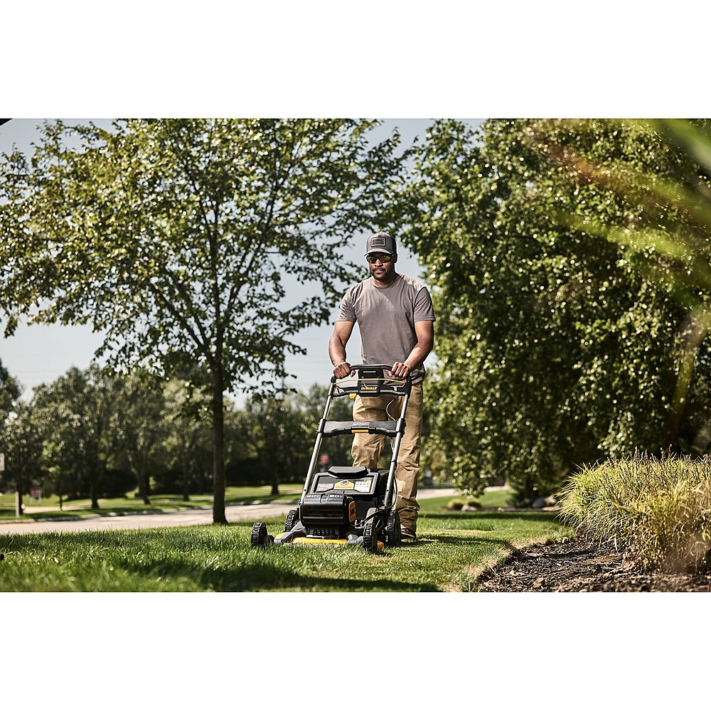 Maintain your property with the completely redesigned DEWALT mower, built from the battery up, for optimal electric cutting performance. The new 2x20V MAX* XR® Push Mower features the patented High Efficiency Cutting System which utilizes the all-new steel cutting deck design, dual blade system, and autosense motor to deliver up to 100 minutes of runtime**. The mower folds with one touch for easy storage and comes with 3-in-1 mulching, bagging and rear discharge.