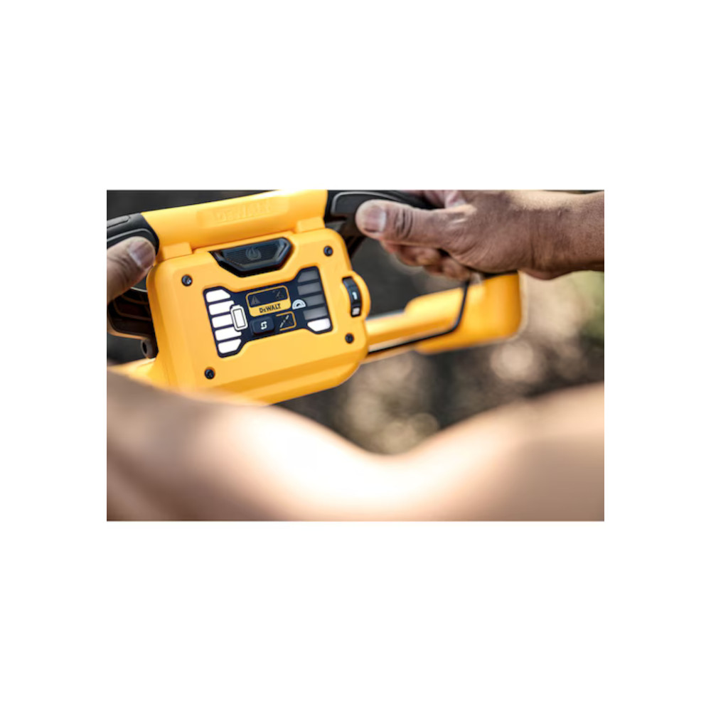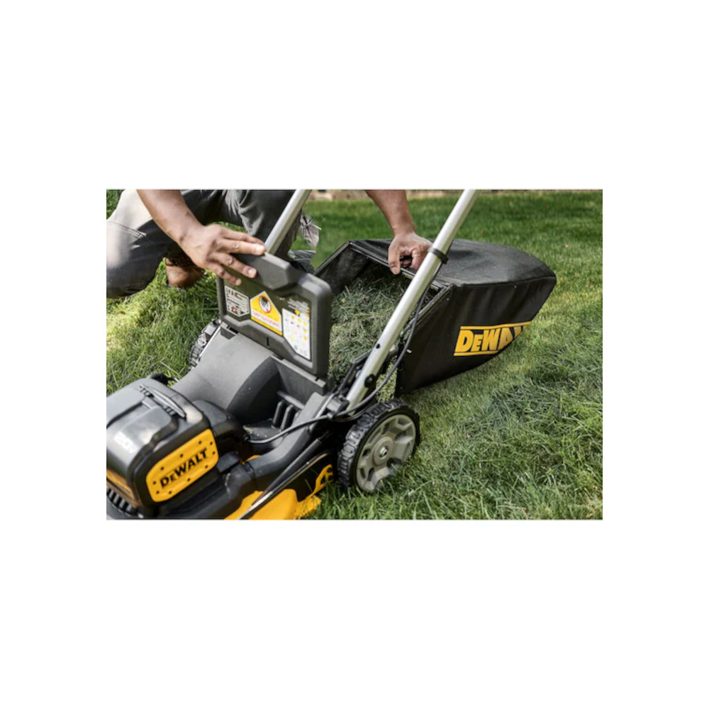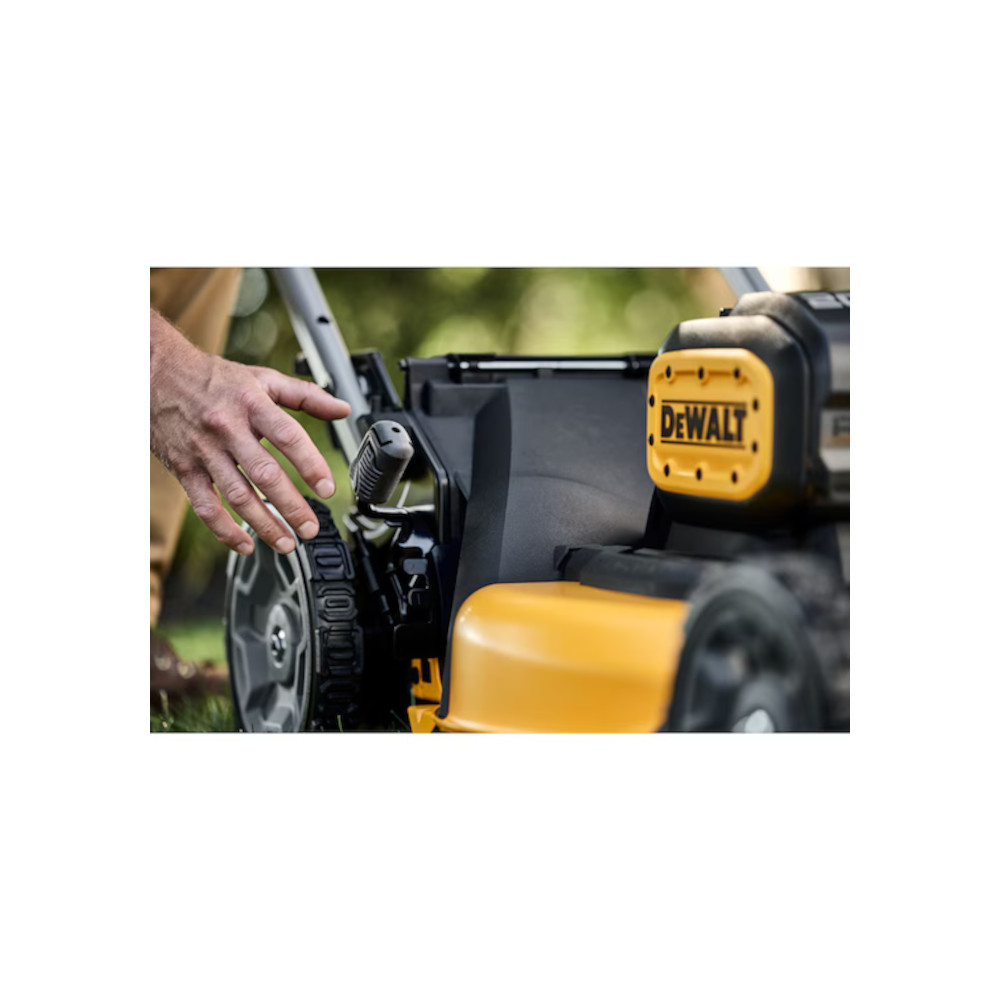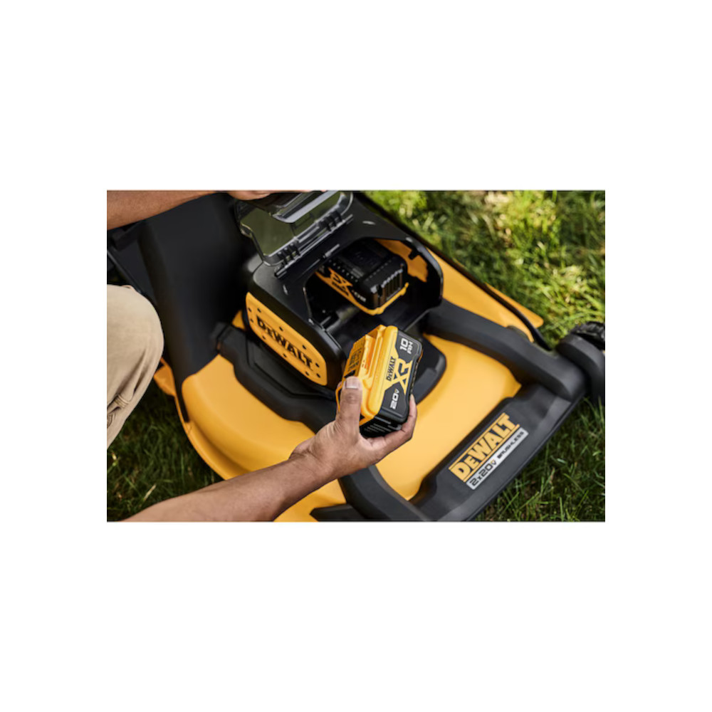 Maintain your property with the completely redesigned DEWALT mower, built from the battery up, for optimal electric cutting performance. The new 2x20V MAX* XR Rear Wheel Drive, Self-Propelled Mower features the patented High Efficiency Cutting System which utilizes the all-new steel cutting deck design, dual blade system, and autosense motor to deliver up to 80 minutes of runtime**. The mower folds with one touch for easy storage and comes with 3-in-1 mulching, bagging and rear discharge capabilities.
