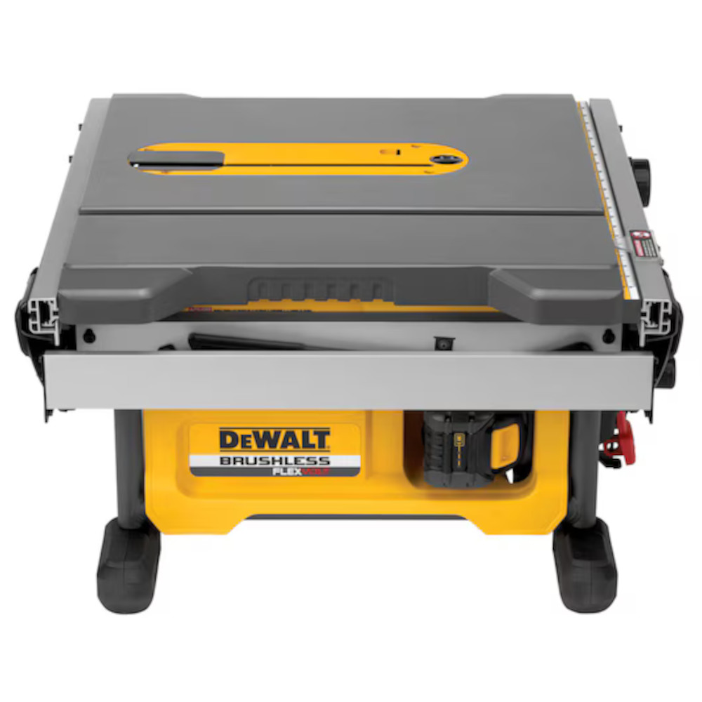 The FLEXVOLT® 60V MAX* 8-1/4 in. Table Saw is maximized for accuracy, capacity and runtime. The brushless motor delivers the power to cut all common materials, the rack & pinion fence allows for fast, easy adjustments and provides the capacity to rip 4×8 sheet goods. The DCS7485T1 comes with one FLEXVOLT 20V/60V MAX* battery and fast charger.